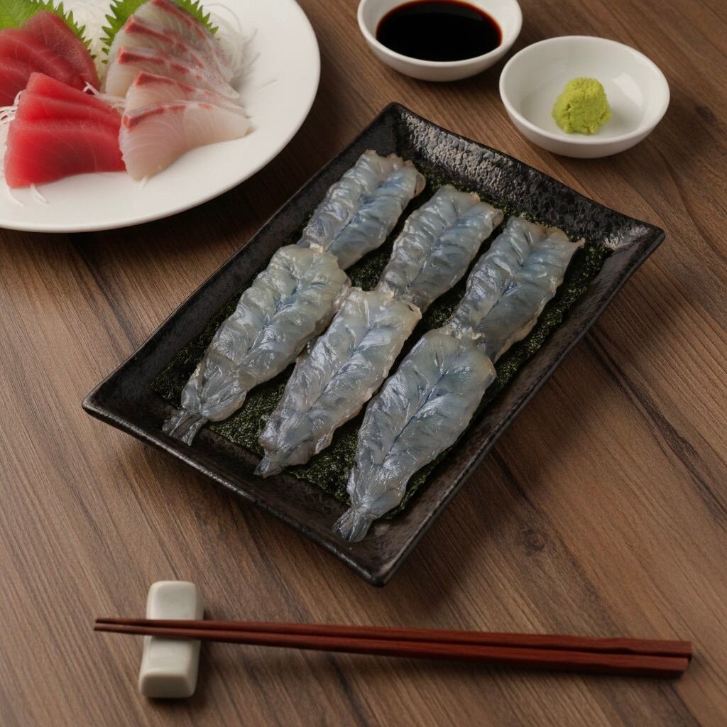 『甘えび』昆布の旨味と甘えびの甘味がよく合います。当店一番人気
