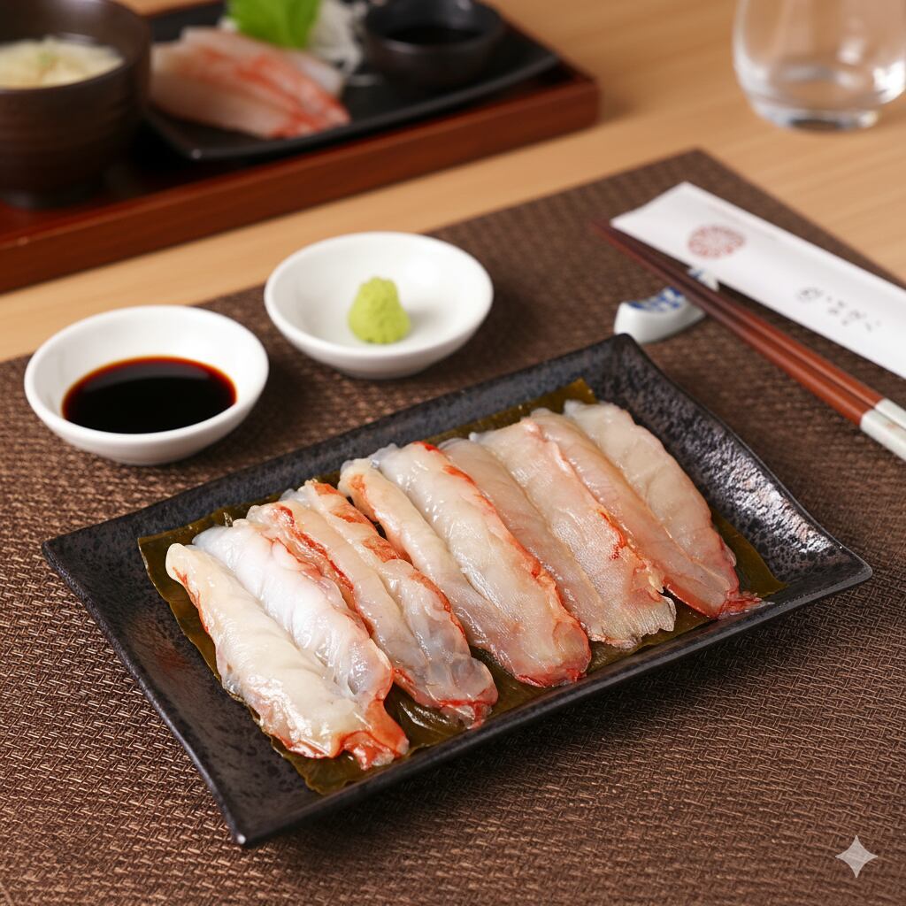 『甘えび』昆布の旨味と甘えびの甘味がよく合います。当店一番人気