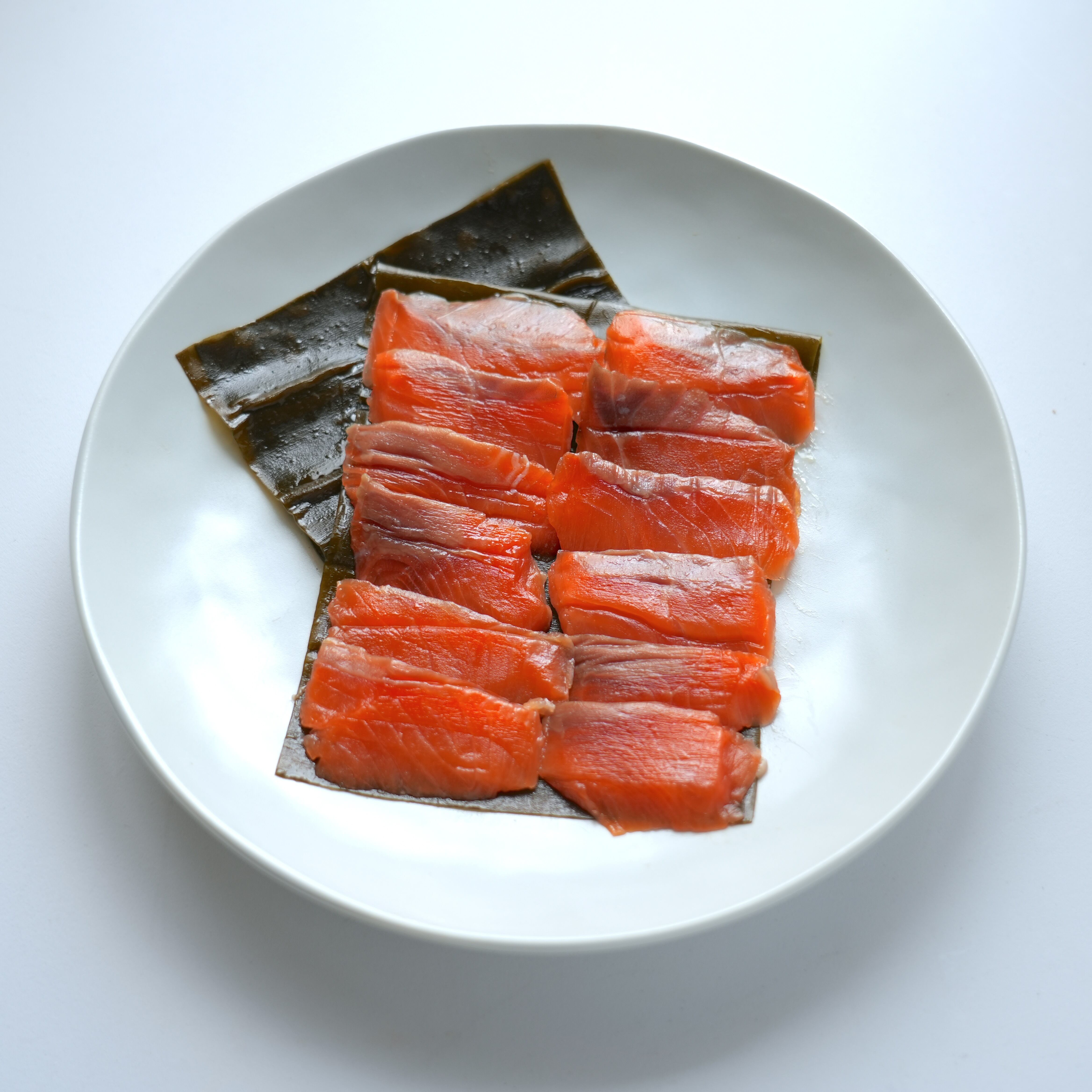 -昆布で締め(熟成)、旨味と塩味を魚介に移します。